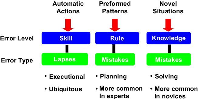 En effet, un manque de pratique aura pour répercussion une quasi-disparition des automatismes et autres réflexes dans le cockpit, comme l’explique le schéma ci-dessous du « Rasmussen’s skill rule knowledge model »